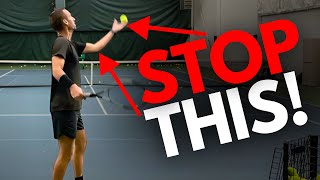 The toss is the most common problem with the serve. Learn how to fix it for good.